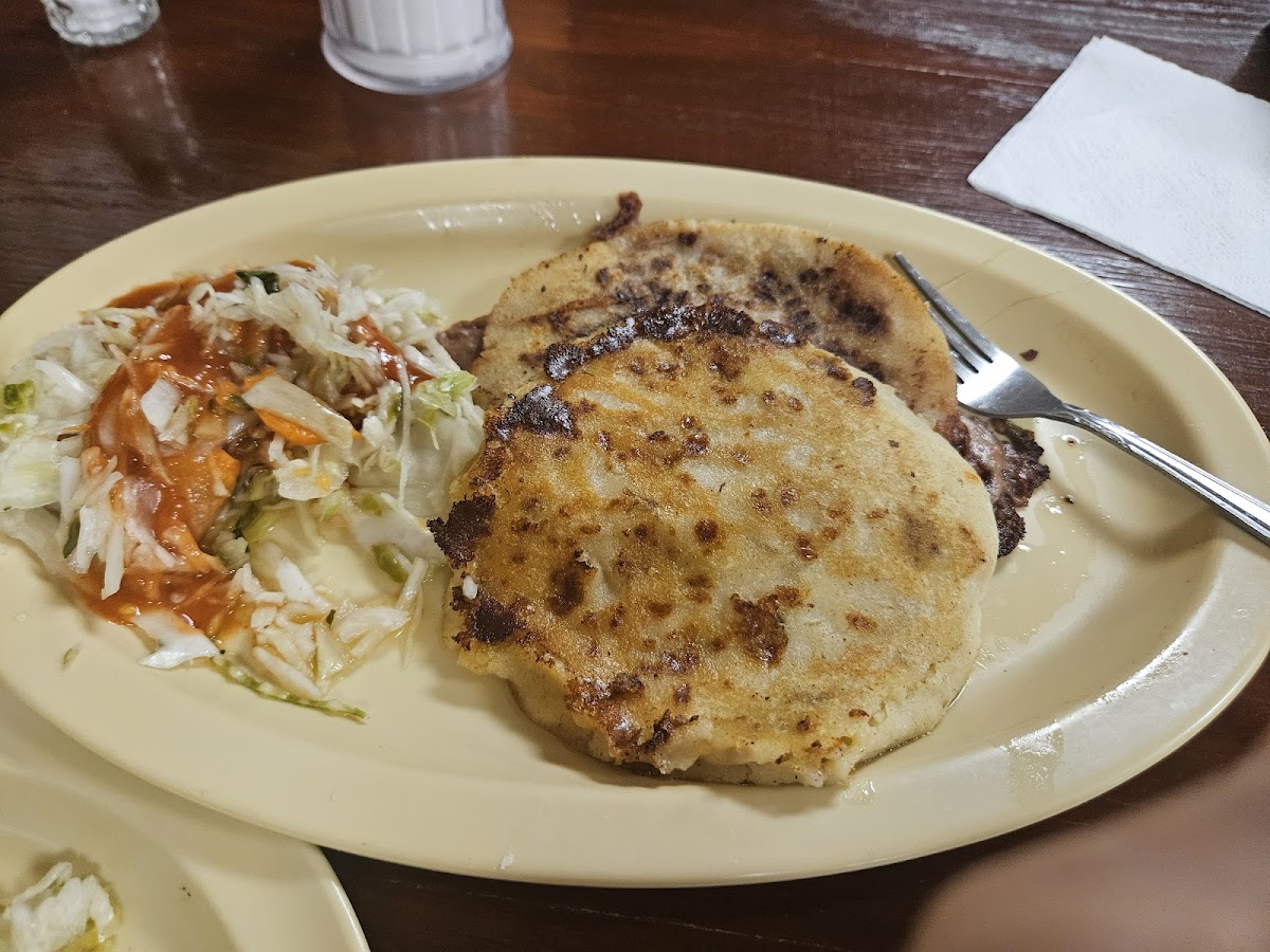 The best pupusas I’ve had in a VERY long time. I am so full! I was going to take a picture to show how big they were but I ate them too fast. The chicken and pork are equally delicious. The sauce and coleslaw were PERFECT complements.